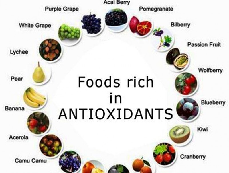 Хүнсний ногоо, жимс, ногоон ургамал, өндөг, мах, ногоон навч, самар зэрэг олон төрлийн хүнсний бүтээгдэхүүнд антиоксидант агуулагддаг. Сармис, шанз, турмерик, карри, гичийн үр, нунтаг чили, сонгино, чинжүү зэрэг амтлагч ногоо, хүнсний ногоон ургамал, ургамалын тос, какао зэрэг нь антиоксидантаар баялаг боловч бага хэмжээгээр хэрэглэгддэг учир хүнсээр дамжин авах антиоксидантын хэмжээ бага байдаг байна. Алим, үзэм, лийр, чавга, тоор, инжир, далдуу модны хатаасан жимсүүд нь антиоксидантын хамгийн сайн эх үүсвэр болдог. Учир нь усгүйжүүлсэн тул антиоксидантын агууламж их байдаг. Ялангуяа үзмэнд полифенол ихээр агуулагддаг. Шанз, нунтаг какао болон олон төрлийн жимс, зарим хүнсний ногоонд процианидин ихээр агуулагддаг. Энэ нь хүний эрүүл мэндэд тустай, молекул жин өндөртэй нэгдэл бөгөөд хүний биед бага хэмжээгээр шимэгдэх боловч ходоод гэдэсний замын нянгийн ургалтыг саатуулдаг үйлчилгээтэй. Хивэг, эрдэнэшиш, овъёс зэрэг нь антиоксидант ихээр агуулдаг. Төрөл бүрийн самарууд нь полифенол антиоксидант ихээр агуулдаг.