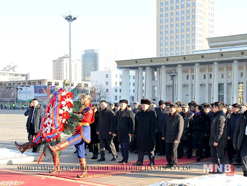 Монгол Улсын Үндсэн хууль батлагдсаны 25 жилийн ойн өдрийг тохиолдуулан жанжин Д.Сүхбаатарын хөшөөнд цэцэг өргөх, Их эзэн Чингис хааны хөшөөнд хүндэтгэл үзүүлэх ёслол өнөөдөр /2017.01.13/ боллоо.
