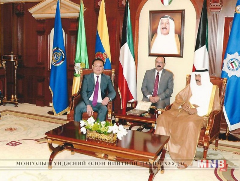 Үүний хариуд Шейх Наваф Аль-Ахмед Аль-Жабер Аль-Сабах Монгол, Кувейтийн харилцаа, хамтын ажиллагаа жилээс жилд өргөн хөгжиж байгаад сэтгэл хангалуун байгаагаа илэрхийлээд, Кувейт Улсын Засгийн газар Монгол Улсад бүх талын дэмжлэг, туслалцаа үзүүлэхэд бэлэн байгааг нотлов. Уулзалтын төгсгөлд Элчин сайд Угсаа залгамжлах Ханхүүд эрүүл энх, сайн сайхныг хүсэв.