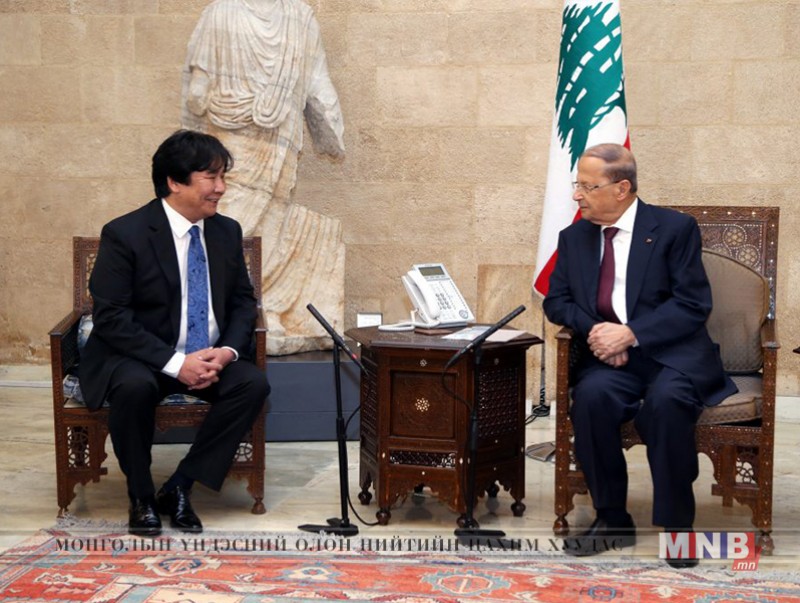 Ерөнхийлөгч Мишель Аун үүрэгт ажилдаа орсонтой нь холбогдуулан хүлээн авч уулзах үеэр Элчин сайд Ч.Баярмөнх Монгол Улсын Ерөнхийлөгч Ц.Элбэгдоржийн мэндчилгээг уламжилж, Монгол-Ливаны найрсаг харилцаа, хамтын ажиллагааг боломжит бүх салбарт хөгжүүлэхийн төлөө ажиллахаа илэрхийлэв. Ерөнхийлөгч Мишель Аун Монгол Улсын Ерөнхийлөгчид хариу мэндчилгээ дэвшүүлж, хоёр улсын харилцаа, хамтын ажиллагааг хөгжүүлэхэд Ливан улсын Засгийн газрын зүгээс бүх талын дэмжлэг туслалцаа үзүүлүүлэх болно гээд Элчин сайдад ажлын амжилт хүсч, баяр хүргэв.