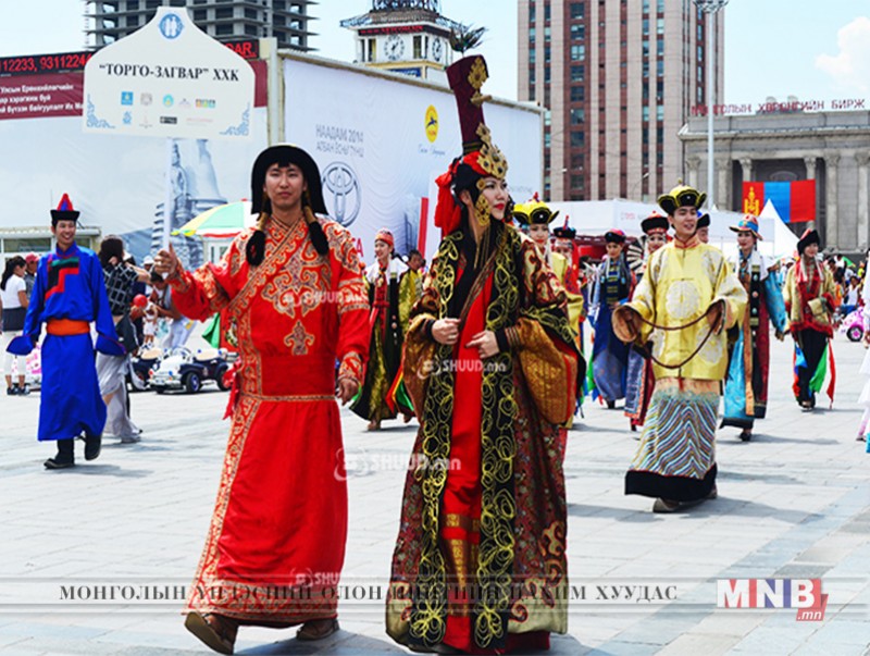Монгол үндэсний хувцастай иргэдийн баярын жагсаал
