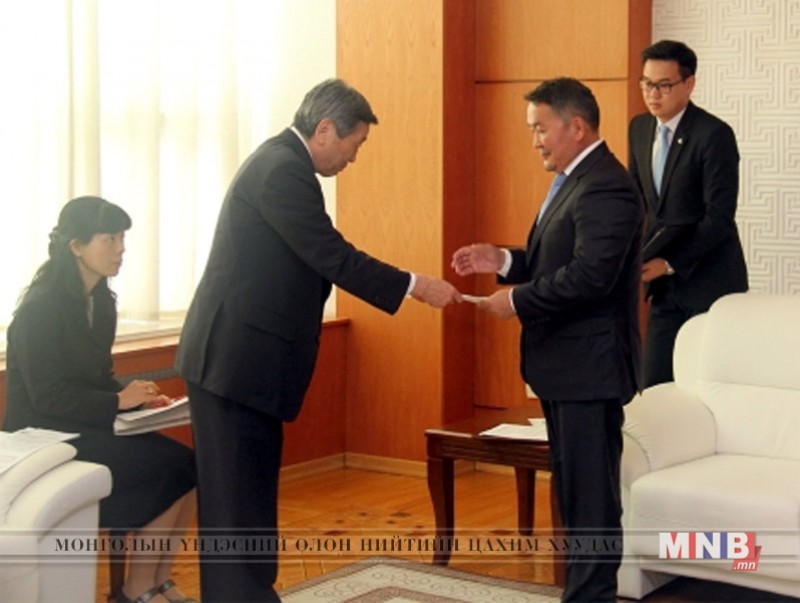 Япон Улсын Ерөнхий сайд Ш.Абэ-гийн бие төлөөлөгч М.Хаяаши уулзалтын эхэнд ноён Ш.Абэ-гийн баяр хүргэсэн мэндчилгээг Монгол Улсын Ерөнхийлөгч Х.Баттулгад гардуулан өгөв.