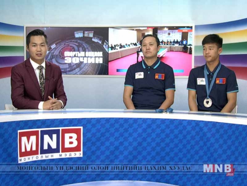 МҮОНРТ-ийн "Монголын мэдээ" суваг. "Спортын онцлох зочин" нэвтрүүлэг. Энэ удаагийн зочноор Монголын Поккет бильярдын холбооны Ерөнхий нарийн бичгийн дарга Л.Баттулга, Залуучуудын ДАШТ-ий хошой мөнгөн медальт тамирчин Э.Тэмүүжин нар оролцлоо.
