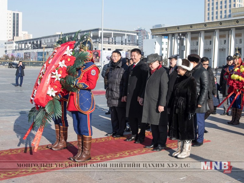 Монгол Улс анхдугаар Үндсэн хуулиа баталж, Бүгд Найрамдах Улсаа тунхагласны 93 жилийн ойг тохиолдуулан УИХ-ын дэд дарга Л.Энх-Амгалан, Ерөнхий сайд У.Хүрэлсүх болон УИХ, Засгийн газрын гишүүд жанжин Д.Сүхбаатарын хөшөөнд цэцэг өргөж, Их эзэн Чингис хааны хөшөөнд хүндэтгэл үзүүллээ.