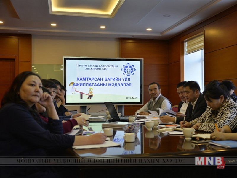 УИХ-ын Хууль зүйн болон Нийгмийн бодлого, боловсрол, соёл, шинжлэх ухааны байнгын хороодын 2017 оны 12/28 дугаар хамтарсан тогтоолоор байгуулагдсан хамтарсан ажлын хэсэг 12 дугаар сарын 05-ны өдөр Гэр бүлийн хүчирхийлэлтэй тэмцэх тухай, Гэмт хэргээс урьдчилан сэргийлэх тухай, Хүүхдийн эрхийн тухай, Хүүхэд хамгааллын тухай хуулиудын хэрэгжилтэд хяналт, шалгалт хийж, холбогдох санал дүгнэлт гаргах ажлынхаа хүрээнд Төв аймгийн Зуунмод суманд ажиллалаа.