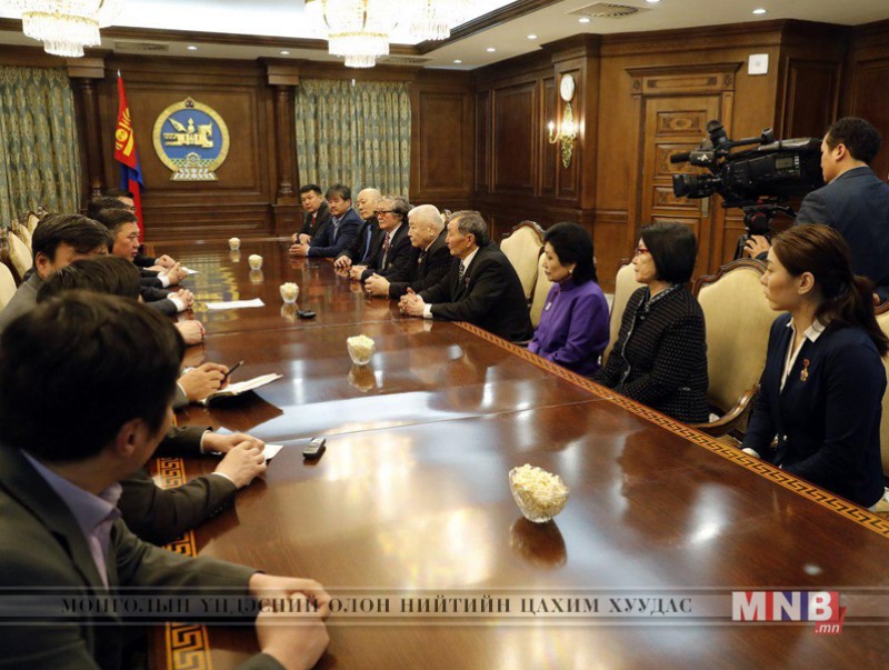 Улсын Их Хурлын дарга М.Энхболд уулзалтын эхэнд Монголын тамирчид олимпийн наадмаас медаль хүртсэний 50 жилийн ойн баярын мэндийг хүргээд, амжилтаа буухиалуулсан олон сайн шавь төрүүлэхийг хүсэн ерөөв. Мөн энэ удаагийн уулзалт Пёнчаны өвлийн олимптой давхцаж байгаагаараа онцлог болохыг тэмдэглээд, 2020 оны Токиогийн олимпод бэлтгэх, амжилтаа улам бататгах талаар санал зөвлөмжөө өгөхийг хүсэв.
