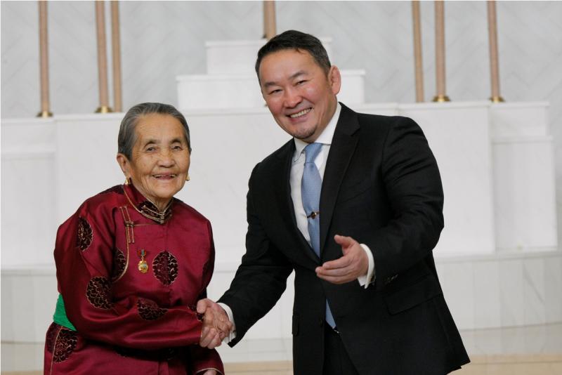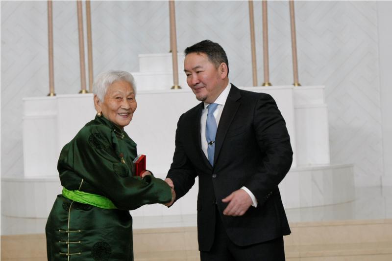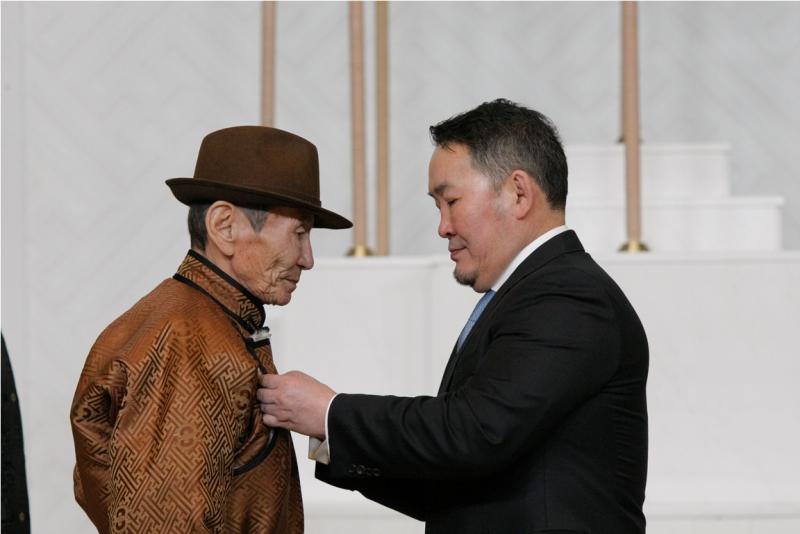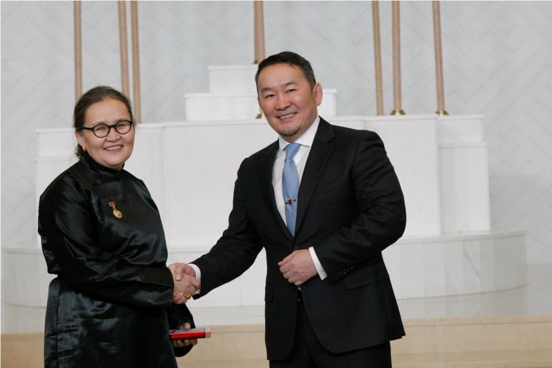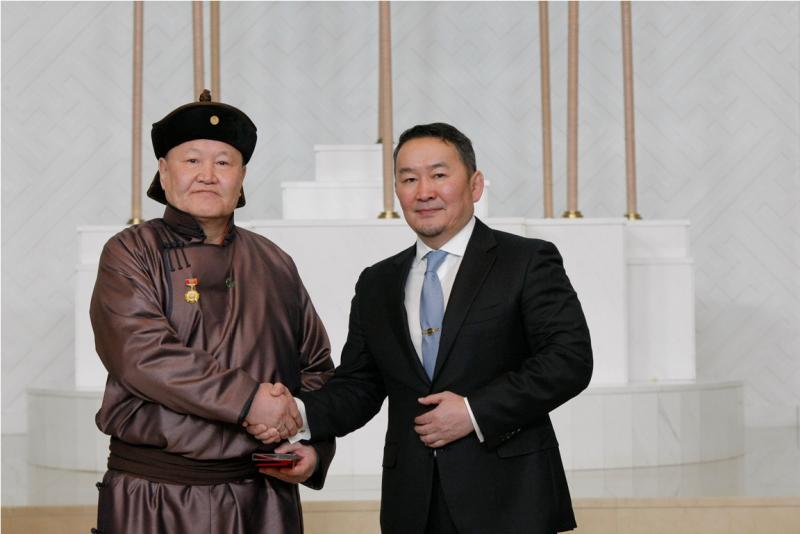 Мөн Монгол Улсын төрийн дээд одон медалиар шагнагдсан эрхмүүдийн төлөөлөл Төрийн ордонд Монгол Улсын Ерөнхийлөгч Х.Баттулгаас шагналаа гардаж авсан юм.