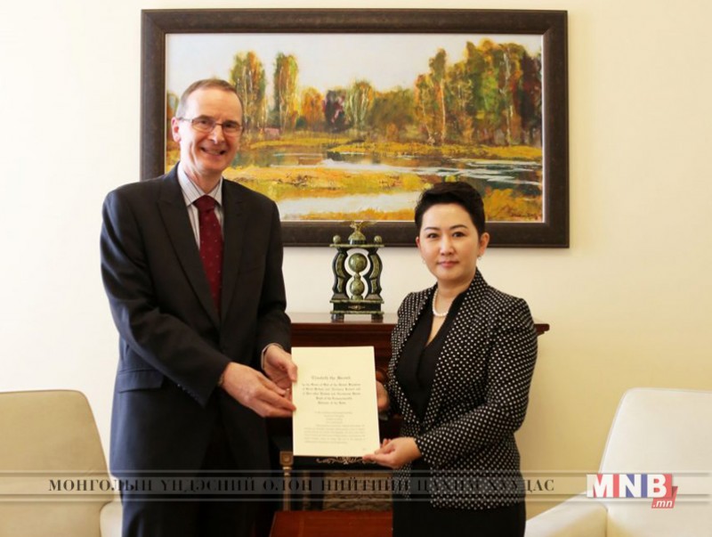 Гадаад харилцааны дэд сайд Б.Батцэцэг Их Британи, Умард Ирландын Нэгдсэн Вант Улсаас Монгол Улсад суух Элчин сайд Филип Мэлоүнийг Итгэмжит Жуух бичгээ барихтай нь холбогдуулан өнөөдөр хүлээн авч уулзлаа.