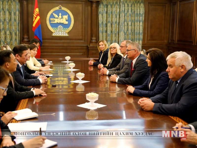 Монгол Улсын Их Хурлын дарга М.Энхболд манай улсад айлчилж буй Бүгд Найрамдах Польш Улсын Сеймийн гишүүн, Сейм дэх Польш-Монголын парламентын бүлгийн дарга Марек Жонса тэргүүтэй төлөөлөгчдийг хүлээн авч уулзлаа.