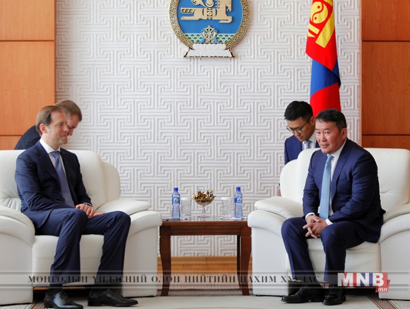 “Монгол-Оросын санаачилга-2018” эдийн засгийн чуулга уулзалтад оролцохоор ирсэн ОХУ-ын Аж үйлдвэр, худалдааны сайд Денис Валентинович Мантуров, ОХУ-ын Ерөнхийлөгч В.В.Путины бие төлөөлөгч Игорь Евгеньевич Левитин нарын албаны хүмүүс өнөөдөр Монгол Улсын Ерөнхийлөгч Х.Баттулгад бараалхлаа.