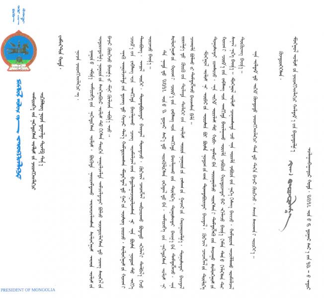 Энэ ялдамд Эрхэм хүндэт Ерөнхийлөгч Танд дахин баяр хүргэж, сайн сайхныг ерөөе” гэжээ.