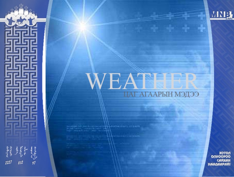УЛААНБААТАР ХОТ: Үүлэрхэг. Бороо орно. Дуу цахилгаантай. Салхи баруун хойноос секундэд 5-10 метр, зарим үед секундэд 12-14 метр хүрч ширүүснэ. 16-18 хэм дулаан байна.