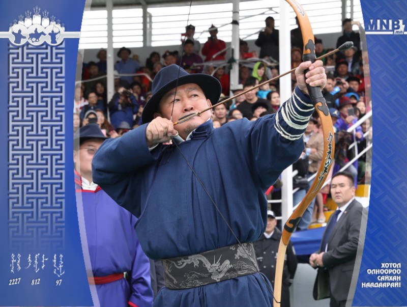 Монгол Улсын Ерөнхийлөгч Х.Баттулга сурын талбайд цэц, мэргэнээ сорьж буй харваачид, наадамчин олонтой мэндчилэн “Тэнгэрийн чоно” хамтлагийн “Морьтон харваачид” үзүүлбэрийг үзэж сонирхсон юм. Мөн эртний сайхан уламжлалын дагуу дуут сумаар гурвантаа харваж Монгол харвааны алтан зурхай, эрхий мэргэн харваачид, наадамчин олондоо хүндэтгэл үзүүллээ.