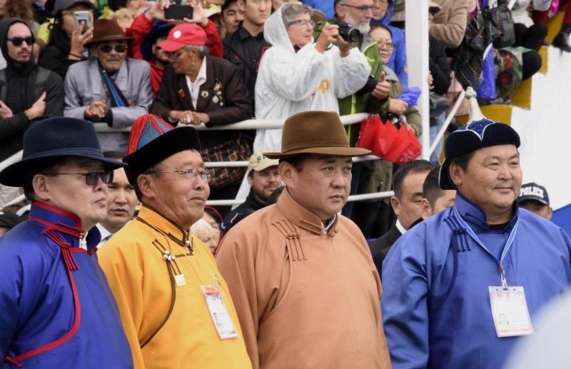 Үндэсний их баяр наадмын нээлтийн үйл ажиллагааны дараа уламжлал ёсоор Монгол Улсын Ерөнхийлөгч Х.Баттулга, Монгол Улсын Их Хурлын дарга М.Энхболд, Монгол Улсын Ерөнхий сайд У.Хүрэлсүх нар Үндэсний их баяр наадмын сурын харваа, шагайн харвааны асраар зочилж, тамирчдад амжилт хүслээ. Мөн Улсын Их Хурлын дарга М.Энхболд шагайн асарт зочлох үеэрээ есөн тохой зайнаас шагай харваж, наадамчин олондоо хүндэтгэл үзүүллээ.