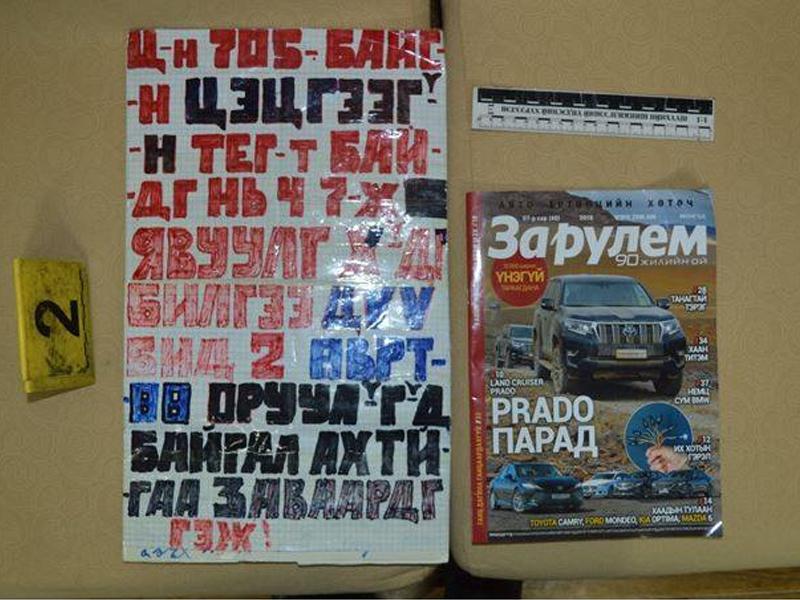 Харин түүний дүү Б “Манай хамаатнуудаас дүүргийн хот тохижилтын газар ажилладаг болон ажиллаж байсан хүн байхгүй. Манай ах хэд хоногийн өмнөөс өвчин нь хөдлөөд янз бүрийн юм ярьдаг нь эхэлсэн. Бас утга нь ойлгомжгүй юм бичээд байдаг юм. СЭМҮТ-д эмчийн хяналтад ороод олон жил болж байгаа” гэдэг тайлбарыг өгчээ. Холбогдогч этгээдийн авч явсан утга тодорхой бус үгстэй лоозон, сэтгүүл, “Би Монгол хүн, Трам” гэх мэт үгтэй цаас тогтоосон малгай зэргийг нь эд мөрийн баримтаар хураан авчээ.