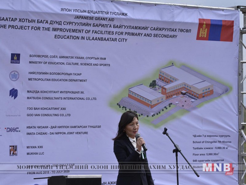 Боловсрол, соёл, шинжлэх ухаан, спортын яамны Ерөнхий боловсролын бодлогын газрын дарга Т.Ням-Очир “Өмнөх дөрвөн шатны төслийн хүрээнд Япон Улсын Засгийн газрын буцалтгүй тусламжаар шинэ сургууль болон өргөтгөл 55-ыг барьж ашиглалтад оруулсан. Энэхүү тав дахь шатны төслийн хүрээнд бүх тооцоо, судалгааг хийснээр дөрвөн сургуулийн барилгын ажил цогцоороо эхэллээ. Энэ сургуулиуд ашиглалтад орсноор 2400 хүүхэд сургуультай болно. Чингэлтэй дүүргийн долдугаар хорооны энэ сургууль хотоос алслагдсан бүсэд, хөгжлийн бэрхшээлтэй хүүхэд суралцах стандартаар барьж, ашиглах учир маш чухал төсөл болж байна” гэв.