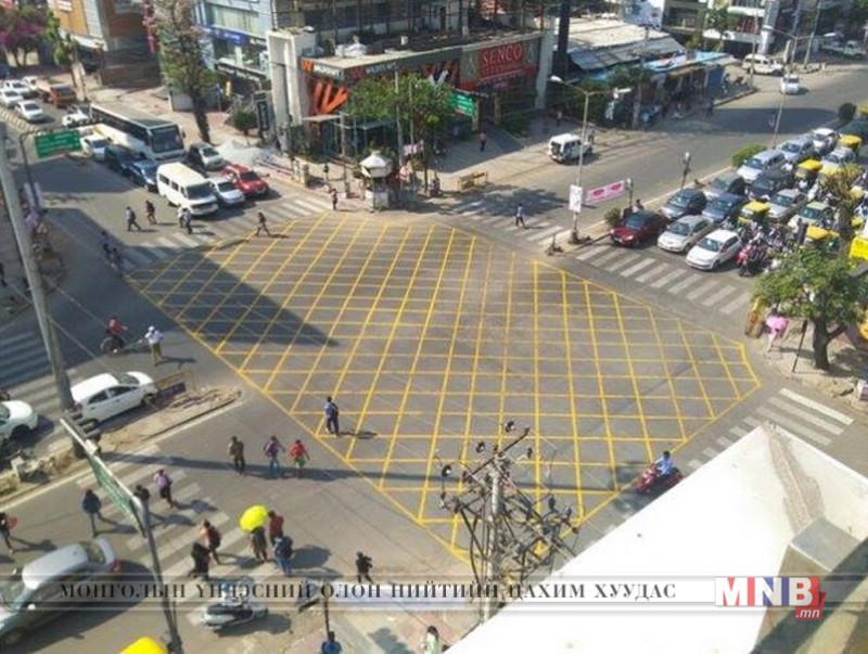 Монгол Улсын Замын хөдөлгөөний дүрмийн шинэчилсэн найруулга энэ оны 11 дүгээр сарын 01-нээс хэрэгжиж эхэлнэ. Дүрмийн хэрэгжилтийг хангах, Замын хөдөлгөөний хэт ачааллыг бууруулах чиглэлээр зарим замын уулзвар болон гол замтай нийлсэн гарцтай хэсэгт шар дөрвөлжин тэмдэглэгээ /Yellow intersectoin/ хийх ажлыг зохион байгуулж байна.