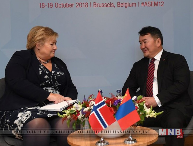 Ази-Европын дээд хэмжээний 12 дугаар уулзалтад оролцож байгаа Монгол Улсын Ерөнхийлөгч Х.Баттулгын бусад орнуудын төр, засгийн тэргүүн нартай хийх уулзалтууд үргэлжилж, өчигдөр үдээс хойш Норвегийн Хаант улсын Ерөнхий сайд Эрна Солбергийг хүлээн авч уулзлаа.