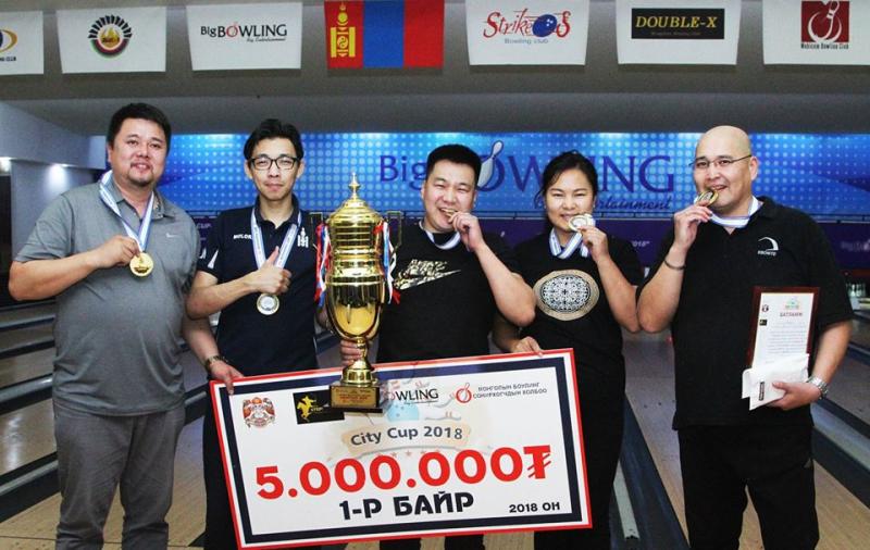 Монголын боулинг сонирхогчдын холбоо болон “Биг боулинг” төв байгуулагдсаны 10 жил, нийслэл хот байгуулагдсаны 379 жилийн ойн нэрэмжит нийслэлийн боулингийн аварга шалгаруулах “City Cup-2018” багийн төрлийн нээлттэй тэмцээн энэ сарын 27-29-нд “Биг боулинг” төвд болж өндөрлөлөө. Тус тэмцээнд нийт 28 баг оролцсоноос “Покер” баг аваргын цом, таван сая төгрөг, “Багануур сити” баг мөнгөн медаль 2,5 сая төгрөг, “Электрон дартс” баг хүрэл медаль 1,5 сая төгрөгийн эзэн болов. Үүнээс гадна өндөр онооны эзэн буюу шилдэг тамирчнаар “Страйкс” клубын Д.Нацагдорж (247 оноо), мөн клубын Т.Долгормаа (196 оноо) нар шалгарч тус бүр 500 мянган төгрөгөөр шагнууллаа.