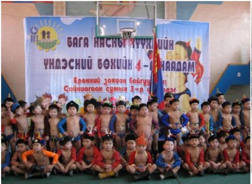 Цэцэрлэгийн насны хүүхдийн барилдааныг анх Сайнцагаан сумын 3 дугаар цэцэрлэгийн багш нар санаачлан сар шинийн баярт зориулан зохион байгуулдаг болсон бөгөөд дөрөв дэхь жилийн барилдаан ийнхүү улс, аймаг, сумын цолтой бөхчүүдийн барилдаантай давхцсан байна.