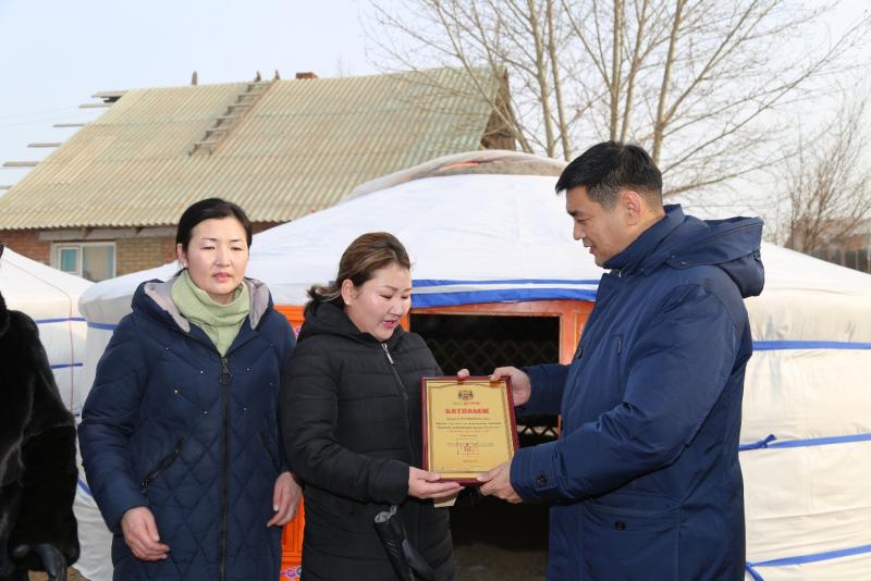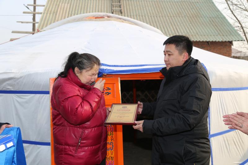 Мөн энэ өдөр Хан-Уул дүүргийн Засаг дарга Ж.Алдаржавхлангийн санаачлагаар есдүгээр хорооны зорилтот бүлгийн хоёр өрхөд өргөө цагаан гэр бэлэглэж, батламж гардууллаа.