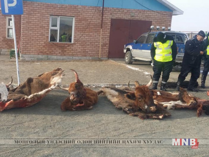 Эл хяналт шалгалтаар энэ сарын 19-ний шѳнѳ тээврийн хэрэгсэл ашиглан Тѳв аймгийн Баянцогт сумын нутгаас бусдын нэг тооны адуу, Тѳв аймгийн Ѳндѳрширээт сумаас дөрвөн тооны адуу хулгайлан шулж, авч явсныг илрүүлжээ. Мөн энэ сарын 20-ний шѳнѳ Тѳв аймгийн Баянцогт сумын нутгаас бусдын дөрвөн тооны үхэр, Ѳвѳрхангай аймгийн Бат-Ѳлзий сумаас 13 тооны адууг хулгайлан амьдаар нь тээвэрлэж явсныг илрүүлж, Тѳв аймаг дахь Цагдаагийн газар шалгалтын ажиллагаа явуулж байна.