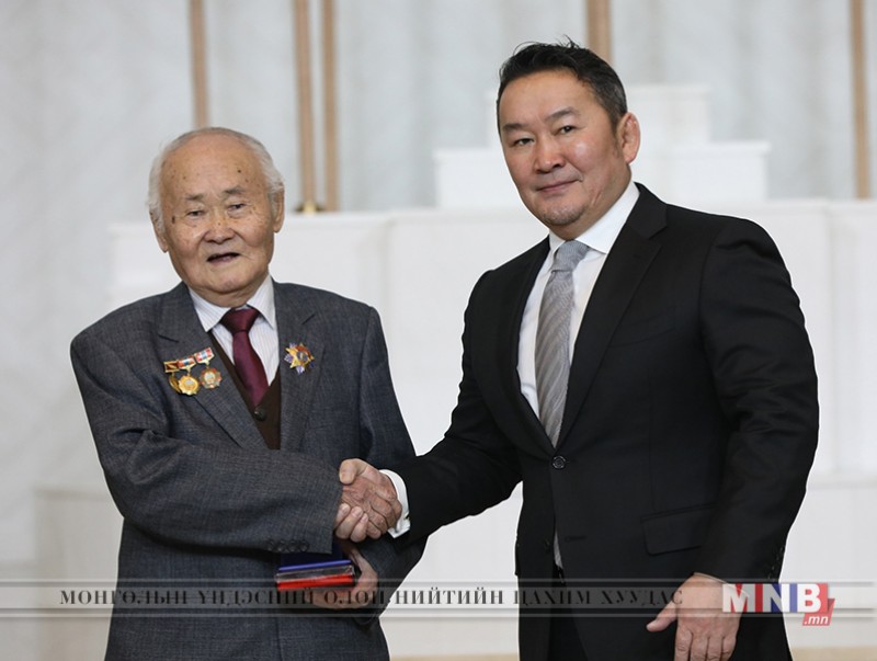 Дундговь аймгийн Дэлгэрцогт сумын өндөр настан, ахмад тээвэрчин Гимбэлийн Падсүрэн нарыг шагналаа.