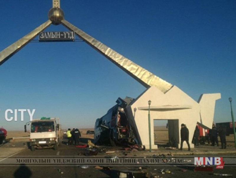 Улаанбаатар хотоос Дорноговь аймгийн Замын-Үүд чиглэлд зорчигч тээвэрлэж явсан хот хоорондын зорчигч тээврийн автобус зам дагуух байгууламжийг мөргөсөн осол өнөөдөр өглөө 06:00 цагт гарчээ. Тодруулбал, өчигдөр орой 20:00 орчим цагт дээрх чиглэлд гарсан дүүрэн зорчигчтой автобус Замын-Үүд сум руу орох зам дагуух төв хаалгыг мөргөсөн байна.