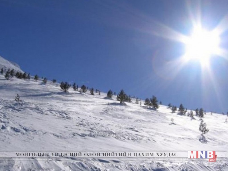 Өнөөдөр баруун аймгуудын нутгаар солигдмол үүлтэй. Өдөртөө Алтайн уулсаар бага зэргийн цас орж, явган шуурга шуурна. Төвийн аймгуудын нутгаар солигдмол үүлтэй, өдөртөө нутгийн зүүн хойд хэсгээр ялимгүй цас орж, явган шуурга шуурна.