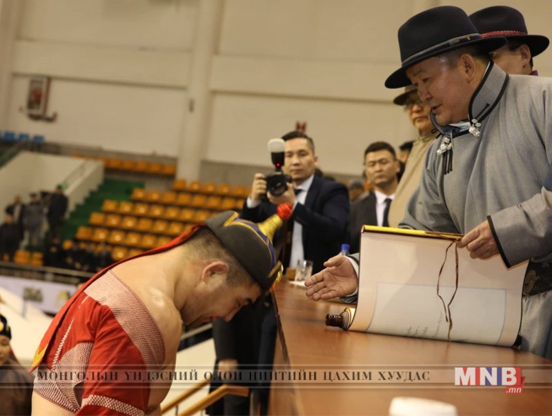 Бөхийн барилдаан дуусмагц Монгол Улсын Ерөнхийлөгч Х.Баттулга их шөвгийн дөрвөн бөхөд “Бахархал”, мөнгөн шагнал гардууллаа.