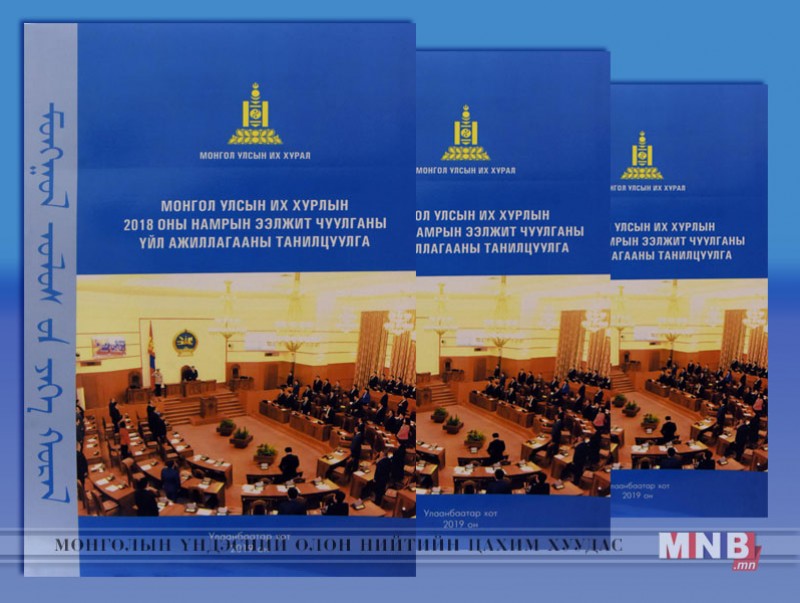 Монгол Улсын Их Хурлын үйл ажиллагаа, батлагдсан хууль, тогтоомжийг иргэд, олон нийтэд үнэн бодитой, шуурхай, хүртээмжтэйгээр мэдээлж, сурталчлах зорилгоор УИХ-ын Тамгын газраас чуулган бүрээр эрхлэн гаргадаг ээлжит ном хэвлэгдлээ.