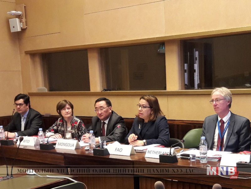 Хуралдаанд Монгол Улсаас НҮБ-ын Женев дэх төв болон Олон улсын бусад байгууллагын дэргэд суугаа Байнгын төлөөлөгч Л.Пүрэвсүрэн хэлэлцүүлэгчээр оролцож, мал аж ахуйн салбарын Монгол Улсын эдийн засагт гүйцэтгэж буй үүрэг, цаашид хэрэгжүүлэх зорилтуудын талаар танилцуулав.