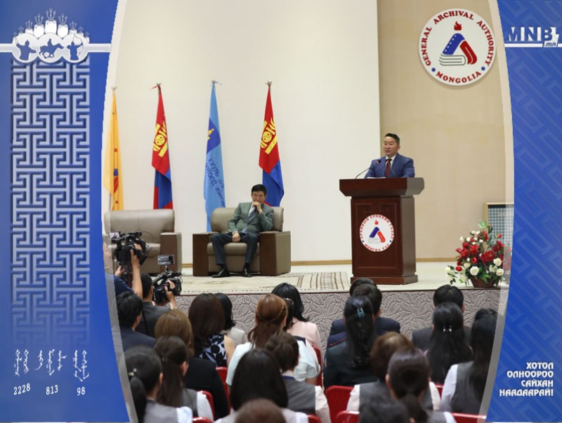 Өнөөдөр Монгол Улсын Ерөнхийлөгч миний бие Монгол үндэстний бахархал, сургамжаар дүүрэн агуу их түүхийн нандин өв санг хадгалан хамгаалж, баяжуулан арвижуулж олон түмний хүртээл болгож байдаг Үндэсний төв архивын үйл ажиллагаа, түүний сан хөмрөгт хадгалагдаж буй олон хосгүй үнэт баримтын дээжистэй танилцаад сэтгэл үнэхээр огшиж, эх түүх, эцэг өвгөд, ахмад үеэрээ бахархах сэтгэгдэл өөрийн эрхгүй төрлөө.