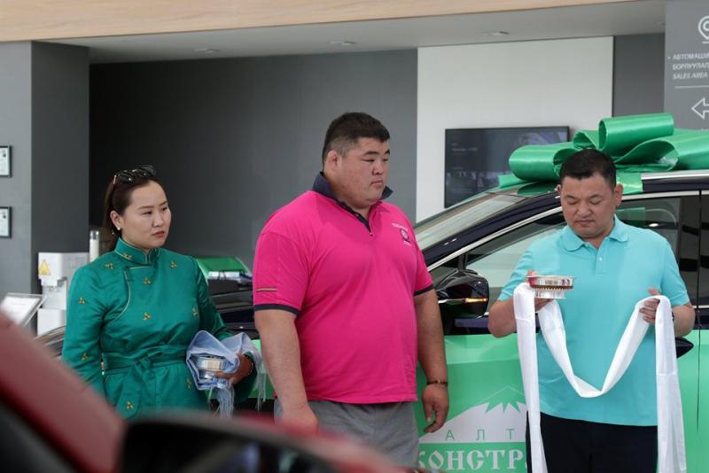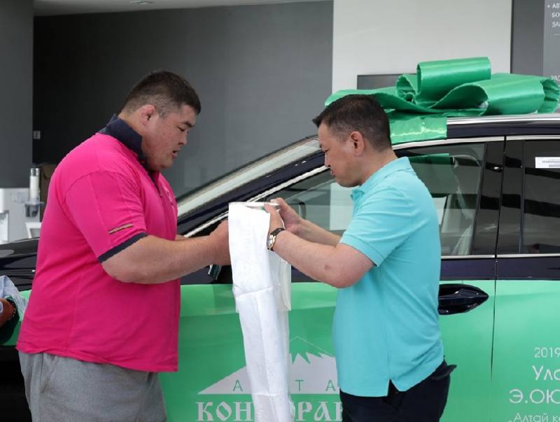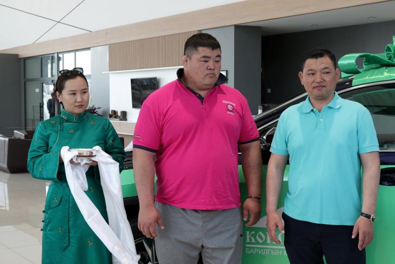 Хэнтий аймгийн Өмнөдэлгэр сумын харьяат Э.Оюунболд Үндэсний их баяр наадамд түрүүлж, Улсын аварга цолны болзол хангасан. Отгон аваргад “Тоёота” компаниас аваргын цом болох 40 кг мөнгөн цом, “Ниссан” компаниас “Ниссан патрол Y62” маркийн автомашин гардуулсан. Түүнчлэн нутгийн зөвлөлөөс нь түүнд таван өрөө байр бэлэглэсэн билээ. Тэгвэл энэ сарын 16-нд "Алтай констракшн” компаниас .