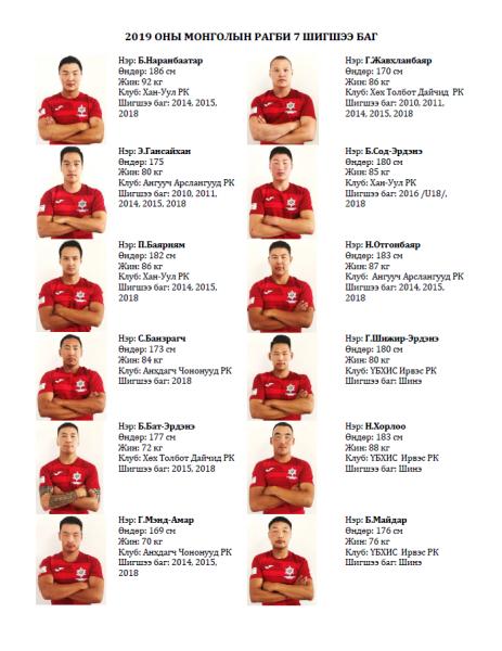 “Азийн Рагби 7 - Цомын төлөөх тэмцээн” ирэх сарын 10-11-ний өдрүүдэд Индонез улсын Жакарта хотод болно. Насанд хүрэгчдийн долоон хүний төрлөөр өрсөлддөг тус тэмцээнд шигшээ багийн дасгалжуулагчаар Г.Дашдэндэв, багийн эмчээр Т.Өнөржаргал нар ажиллах юм байна. Түүнчлэн шигшээ багт дотоодын таван клубээс шалгарсан 12 тамирчин багтсанаас гурав нь анх удаа олон улсын тэмцээнд оролцож байгаа аж.