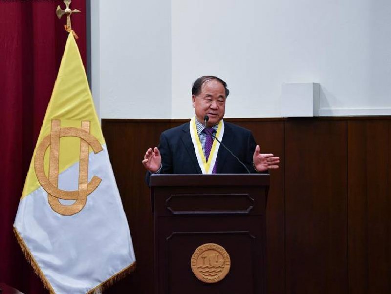 Тус их сургуулийн хурлын танхимд болсон ёслолын ажиллагааны үеэр зохиолчийн намтар, уран бүтээлийнх нь талаар өгүүлж, дэд ректор Альдо Панфичи Мо Яньд хүндэт докторын диплом гардуулав. Ёслолын үеэр Мо Янь “Перу, Хятад хоёр хэдий далай, тэнгисээр зааглагдаж, алс хол оршдог ч уран зохиолоор ханьсан ойртож байна. Би Перугийн ард түмний ахуй амьдрал, оюун сэтгэл, үүх түүх, бодит байдлыг уран зохиолоор дамжуулан таньсан. 1980-аад онд Латин Америкийн уран зохиол надад болоод Хятадын олон зохиолчид ихээхэн нөлөөлсөн” гэжээ.