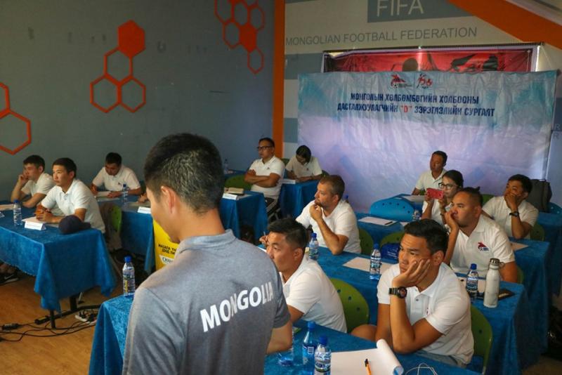 Голчлон 6-8 настнуудад хөлбөмбөг заах "D" зэрэглэлтэй дасгалжуулагчийн сургалт өчигдөр эхэллээ. Уг сургалтын анхан шатны хичээлийг МХБХ-ны Техникийн захирал Хатем Соусси, Хүүхэд залуучуудын хөгжил хариуцсан мэргэжилтэн Растислав Бозик нар зааж байна.