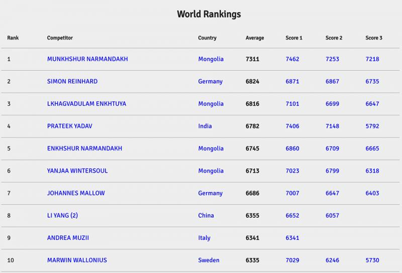 Ташрамд дуулгахад, өмнө нь ой тогтоолтын тамирчдын дэлхийн чансааг алдарт тамирчин Алекс Муллен сүүлийн гурван жил тасралтгүй тэргүүлж байсан билээ. Тэгвэл Алекс Муллен энэ жил есдүгээр байрт бичигдсэн бөгөөд монголын дөрвөн тамирчин түүнийг гүйцсэн байна.
