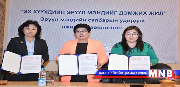 Эрүүл мэндийн сайд Н.Удвал, Монголын эрүүл мэндийн ажилтны үйлдвэрчний эвлэлийн холбооны дарга О.Мягмар, Монголын хувийн хэвшлийн эрүүл мэндийн байгууллагын нэгдсэн холбооны холбооны ерөнхийлөгч З.Мэндсайхан нар Эрүүл мэндийн салбарын удирдах ажилтнуудын зөвлөлгөөний үеэр “Эрүүл мэндийн салбарын хөдөлмөр, нийгмийн зөвшлийн гурван талт хамтын хэлэлцээр”-т гарын үсэг зурлаа.