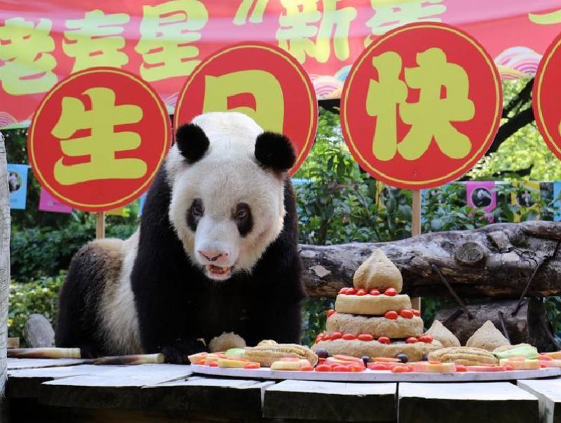 Урд хөршийн CCTV-ийн мэдээлснээр "Эмээ панда"-гийн төрсөн өдрөөр Чунчины амьтны хүрээлэнд 100 гаруй хүн цуглажээ. "Эмээ панда" 98 кг жинтэй бөгөөд өдөрт 30 кг хулсны найлзуур, 0.5 кг хулсны навч, нэг кг алим, 70 грамм цэвэршүүлсэн тэжээл иддэг юм байна.