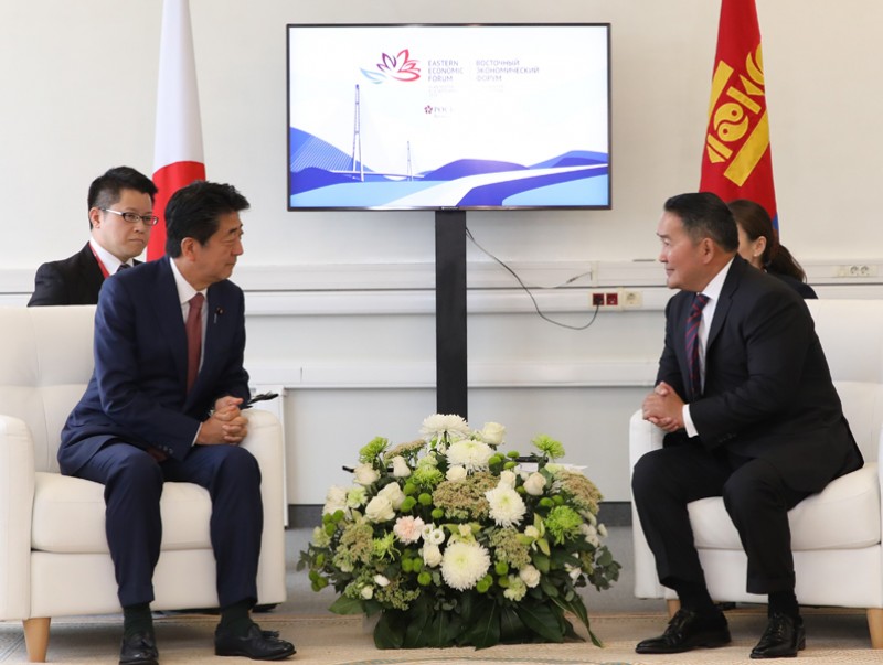ОХУ-ын Владивосток хотноо болж буй Дорнын эдийн засгийн V чуулга, уулзалтад оролцож буй Монгол Улсын Ерөнхийлөгч Х.Баттулга өнөөдөр Япон улсын Ерөнхий сайд Шинзо Абэтай уулзлаа.