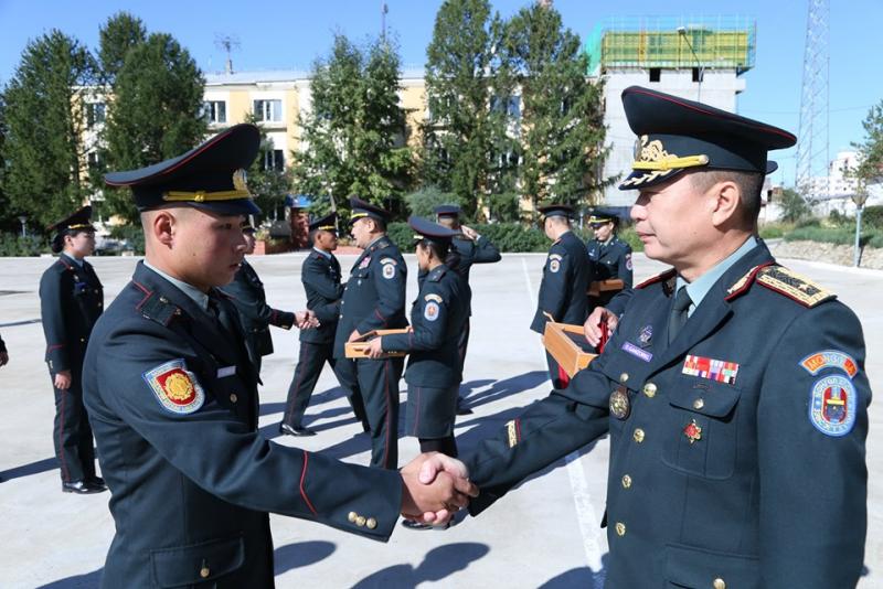 Цол олгох, Зэвсэгт хүчний анги, салбарт томилох ёслолын арга хэмжээнд ЗХЖШ-ын Ажиллагааны удирдлагын газрын дарга, бригадын генерал Д.Ганзориг, Зэвсэгт хүчний Хуурай замын цэргийн штабын дарга, хурандаа С.Дашзэвэг, Зэвсэгт хүчний Агаарын цэргийн штабын дарга, бригадын генерал Б.Батбаяр, ЗХЖШ-ын Хүний нөөцийн хэлтсийн даргын албан үүргийг түр орлон гүйцэтгэгч, хурандаа Н.Гантөмөр нарын албаны хүн оролцов. Түүнчлэн бригадын генерал Д.Ганзориг шинэ офицеруудад баяр хүргэж, амжилт хүслээ. Тэрбээр "Зэвсэгт хүчний эгнээнд орж байгаа та бүхэнд баяр хүргэе. Та бүхэнд дөрвөн жилийн хугацаанд эрдэмтэн багш нараасаа олж авсан мэдлэгээ цэргийн албанд хэрэгжүүлэх боломж тохиож байна. Цэргийн амьдрал дээр омогших, бахархах олон сайхан зүйлс тохиохын зэрэгцээ сэтгэлийн тэсвэр тэвчээр, хатуужил шаардсан асуудал ч таарна. Энэ бүхнийг давсны дараа жинхэнэ офицер болно. Түүнээс дэслэгч цол авснаараа офицер болохгүй. Томилогдон очсон анги, салбартаа мэдлэг, ур чадвар, ажлын үүрэг гүйцэтгэлээрээ үргэлж манлайлагч нь байж, доорх цэргүүддээ, дээрх удирдлагууддаа түшигтэй яваарай. Зэвсэгт хүчин хэн сайн ажиллана, түүнийг дэмжиж, дараагийн сургуульд сургаж, бэлтгэдэг юм шүү. Та бүхний өмнө асар их ирээдүй байна. Эрхэм дэслэгч та бүхэн өргөсөн тангарагтаа үнэнч байж, албандаа хоёргүй сэтгэлээр хичээж ажиллаарай" гэсэн юм. Мөн томилогдсон шинэ офицеруудыг төлөөлж, ҮБХИС-ийг онц дүнтэй дүүргэсэн, дэслэгч Э.Баяржаргал "Мөрдэс нэгт нөхдөдөө сургуулиа амжилттай төгсөж, Зэвсэгт хүчин хэмээх том өрх айлын нэг гишүүн болж байгаа явдалд баяр хүргэе" гээд Зэвсэгт хүчний нэр хүндийг өндөрт өргөж явна гэдгээ илэрхийллээ.