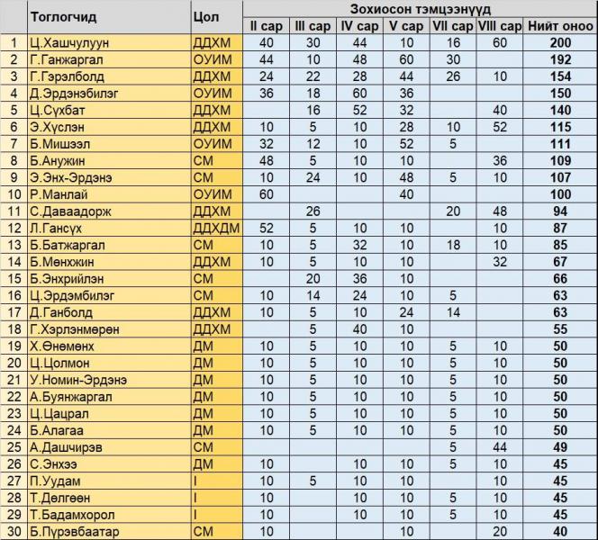 | Даамын дээд лигийн тэмцээнийг Ц.Хашчулуун тэргүүлж байна | ||