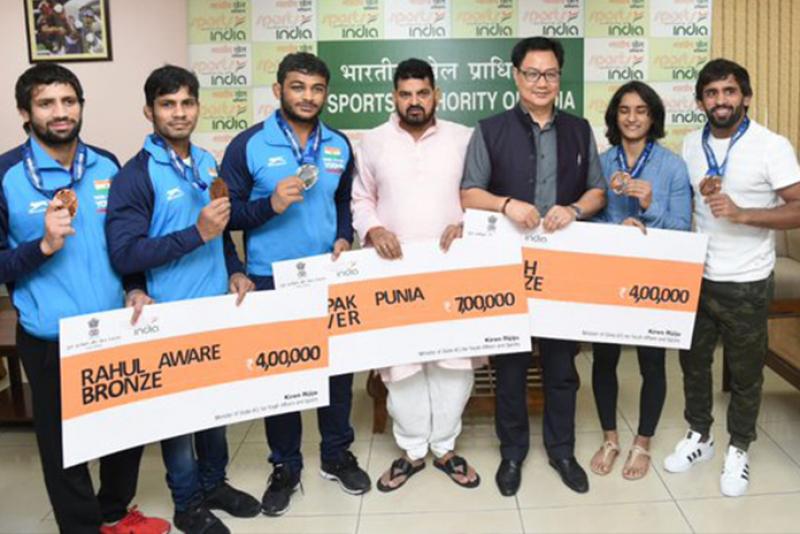 Харин Энэтхэгийн чөлөөт бөхийн холбооноос эрэгтэйчүүдийн 86 кг-ын жинд мөнгөн медаль хүртсэн Дипак Пунияг 700 мянган рүпигээр шагнасан бол хүрэл медаль хүртсэн Рави Кумар (57 кг), Рахул Аваре (61 кг), Бажранг Пуния (65 кг), Винеш нарт (53 кг) 400 мянган рүпигийн мөнгөн шагнал олгожээ.