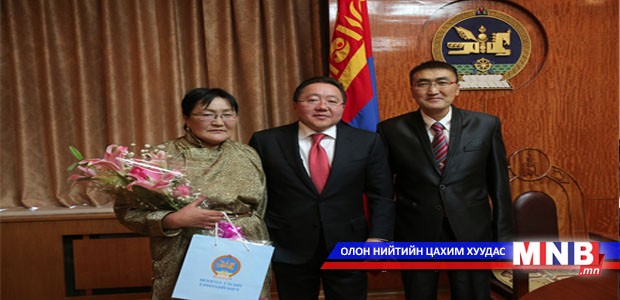 Уулзалтын төгсгөлд Монгол Улсын Ерөнхийлөгч Ц.Элбэгдорж сэтгүүлч Б.Эрдэнэцогтод эрүүл энхийг хүсч, ээж Б.Баасанжаргалд нь олон улсын эмэгтэйчүүдийн баярын мэнд хүргэн цэцгийн баглаа гардууллаа.