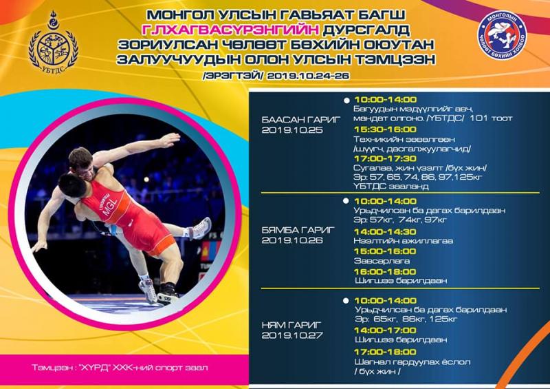 Монгол Улсын гавьяат багш, шинжлэх ухааны доктор, ҮБТДС-ийг үүсгэн байгуулагч Г.Лхагвасүрэнгийн дурсгалд зориулсан чөлөөт бөхийн оюутан, залуучуудын олон улсын тэмцээн энэ сарын 26-27-нд “Хүрд” спорт зааланд болохоор болжээ. ҮБТДС, МЧБХ хамтран зохион байгуулж буй тус тэмцээнд Монгол, ОХУ, БНХАУ, Австрали, БНСУ-ын тамирчин оролцох юм байна.