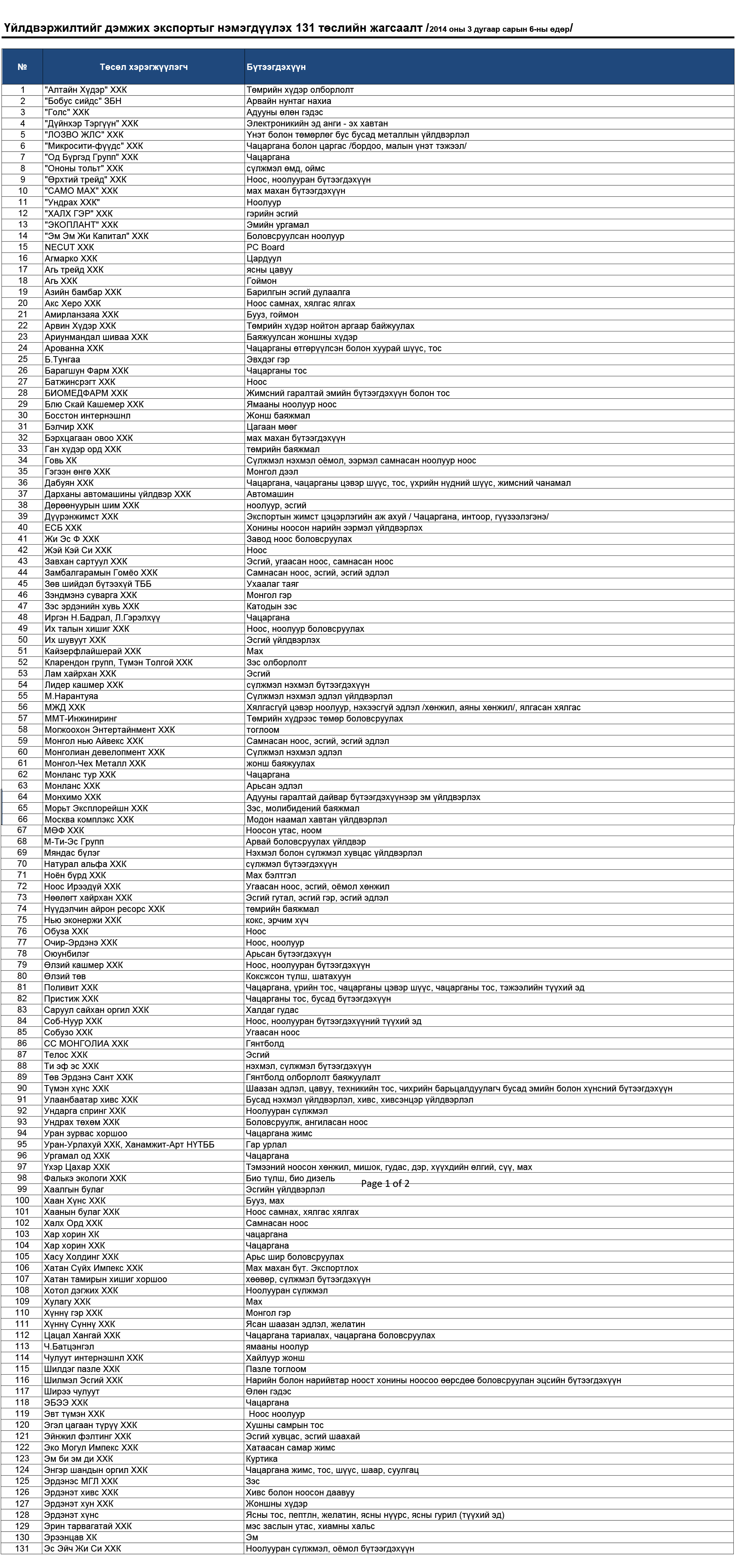 Засгийн газар энэ жил үйлдвэржилтэд зориулж 1 их наяд төгрөг зарцуулахаар болсон. Үүнийг арилжааны банкуудаар дамжуулан экспортыг нэмэгдүүлэх, импортыг орлох бүтээгдэхүүн үйлдвэрлэсэн аж ахуйн нэгжүүдэд 5 жилийн хугацаатай, жилийн 9 хувийн хүүтэй олгохоос гадна, эхний нэг жил үндсэн төлбөрөөс чөлөөлөх юм. Энэ зээлд хамрагдахаар нийт 1151 төсөл ирснээс 2 нь хэт өндөр дүнтэй, 61 нь давхардсан байсан учраас эхний ээлжинд 1088 төсөл сонгон авсан байна. Үүнээс 131 экспортыг дэмжих, 757 нь импортыг орлох төсөл байсан бол, 200 нь зориулалт бус төсөл байжээ.