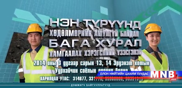 Монголын Уул уурхайн үндэсний ассоциацаас зохион байгуулж буй “Нэн түрүүнд Хөдөлмөрийн аюулгүй байдал-2014” бага хурал, үзэсгэлэн өнөөдөр Эрдэнэт хотод эхэллээ.