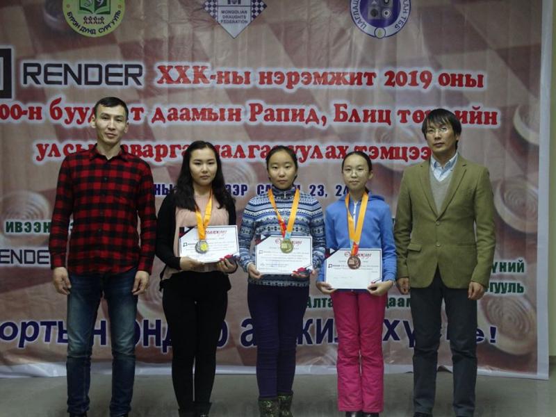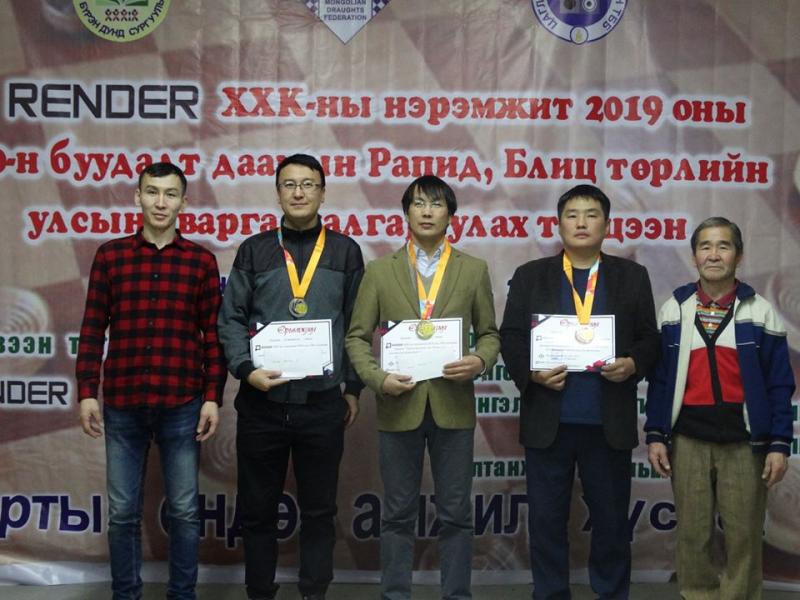 Харин тэмцээний рапид буюу түргэвчилсэн тоглолтын төрөлд эрэгтэй 60, эмэгтэй 29 тамирчин өрсөлдсөн. Дүн гарахад эрэгтэйчүүдээс ОУИМ Г.Ганжаргал (Ирээдүй) 16, ОУИМ Д.Эрдэнэбилэг (Шинэ Монгол) 14, ОУИМ Р.Манлай (Алтан хүү) 14, эмэгтэйчүүдээс ДДХМ Б.Мөнхжин (Алтан хүү) 14, ДДХМ Г.Хэрлэнмөрөн (Идэр ИС) 14, ДДХМ Э.Хүслэн (Алтан хүү) 14 оноогоор медалийн эзэд болсон. Шагналт IV байранд СМ Б.Батжаргал (BBG мастер), СМ Б.Есүй (Сонгодог байрлал), V байранд ДДХМ Ц.Сүхбат (Хасу-Мегастарс), СМ Б.Анужин (Алтан хүү) нар шалгарчээ. Тусгай шагналыг хөвгүүдээс ДМ С.Болор (Ирээдүй), охидоос ДМ М.Нарантуяа (Ирээдүй), ахмад тамирчдаас СМ П.Лхагвасүрэн (Хэнтий) нар хүртсэн байна.