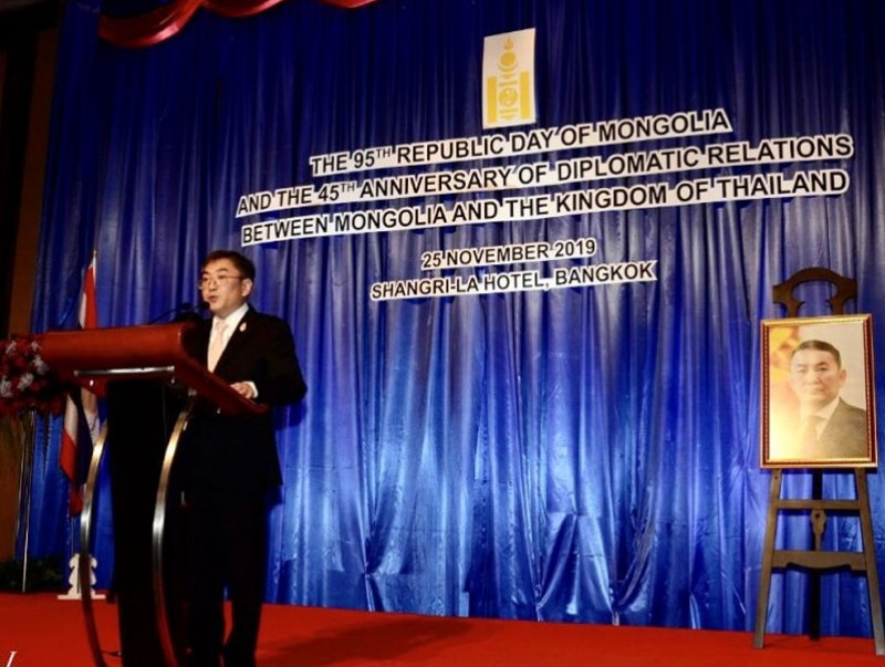 Бүгд Найрамдах Улс тунхагласны 95 жилийн ой болон Монгол Улс, Тайландын Хаант Улсын хооронд дипломат харилцаа тогтоосны 45 жилийн ойг тохиолдуулан тус улсаас Тайландын Хаант Улсад суугаа Элчин сайдын яам 2019 оны 11 дүгээр сарын 25-ны өдөр Бангкок хотын “Шангри-Ла” зочид буудалд хүндэтгэлийн хүлээн авалт зохион байгуулав.